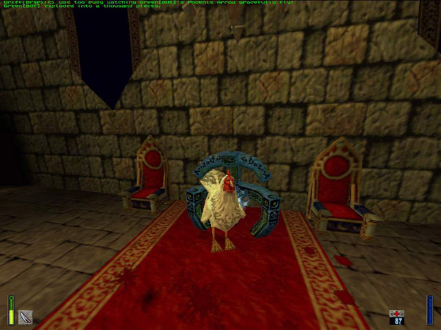 Check it out, a .. ahh, chicken fight! If anyone else has some screenshots from one of these 'chicken' servers, please send them over! Too much fun for one person to have ... |